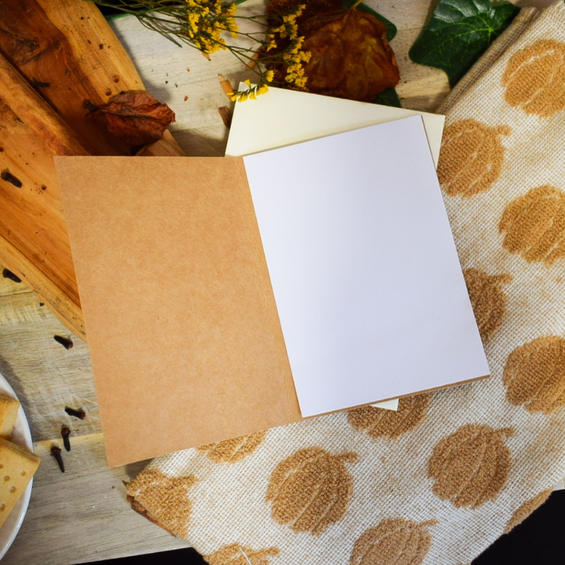 A6 size, Blank Inside, Comes with an ivory envelope provided.